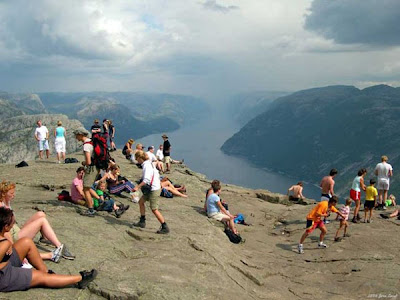 I’m getting vertigo just by looking at this. Preikestolen, known in English as Preacher’s Pulpit or Pulpit Rock, a 604 meters cliff in Norway is one of the best places in the country to get a view of the valley, Lysefjorden. The major attraction is the top of the cliff, a 25 by 25 meters square and flat surface, visited by thousands of tourists every year. Here’s how it looks from the top!